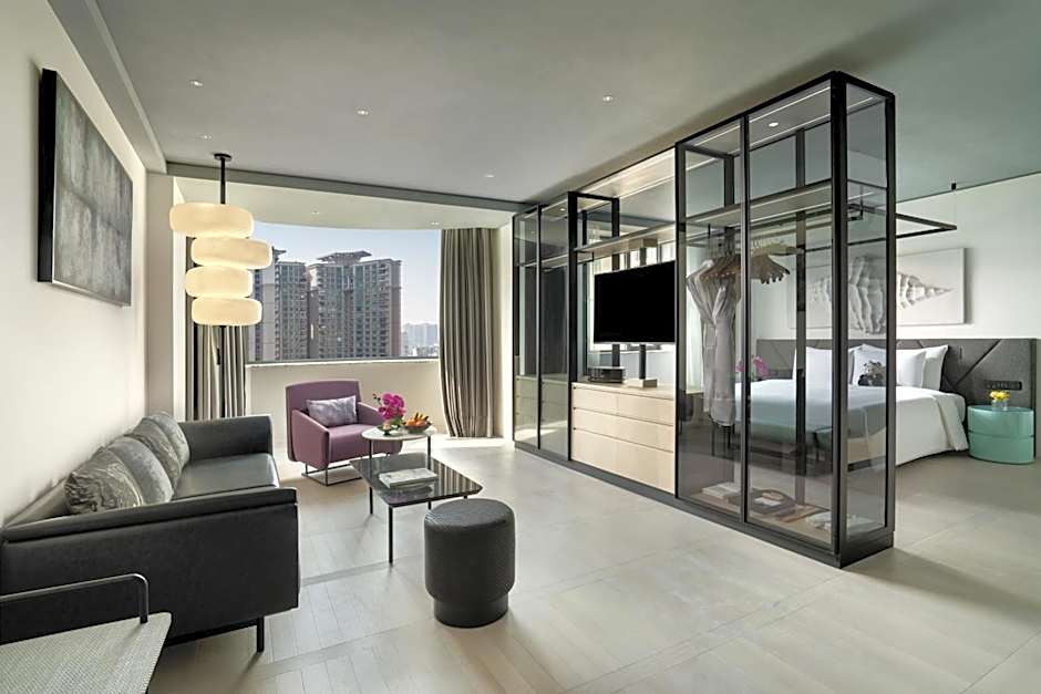This suite features free mini-bar, executive floor benefits and luxurious decor. Includes a spacious living room and floor-to-ceiling windows with panoramic views.